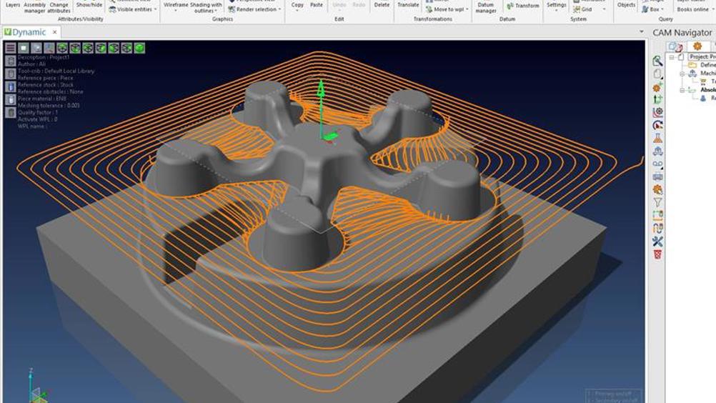 VISI Machining 3D crea sofisticati ed intelligenti percorsi utensile 3D per la lavorazione dei più complessi modelli tridimensionali. Dedicate lavorazioni per l’alta velocità (HSM) e funzionalità di smoothing per ammorbidire il percorso utensile, consentono di generare percorsi ISO molto efficienti. I tempi di calcolo sono rapidi e gli algoritmi per l’ottimizzazione del codice NC prodotto, riducono i tempi di lavorazione in macchina.